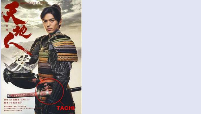 Tachi: pedang jendral, biasa digunakan oleh shogun dan daimyo pada saat perang