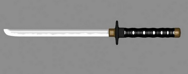 Ninjato: pedang ninja, memiliki ciri khas blade lurus dan tsuba kotak
