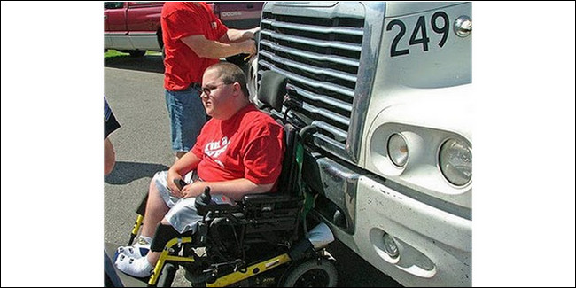 Seorang pria 21 tahun punya perjalanan yang akan dikenang seumur hidup ketika kursi roda listrik yang dia naiki bersarang di depan karburator dari semi trailer dan didorong di jalan raya sepanjang 6,5 KM kilometer dengan kecepatan 80 KM/Jam.
