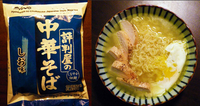 Mie instan tradisional dari Jepang ini teksturnya kenyal dan berkaldu encer. Jika dilengkapi telur dan ayam panggang mie ini semakin lezat. Bisa ditambah garam dan merica kalau ingin rasa lebih kuat.