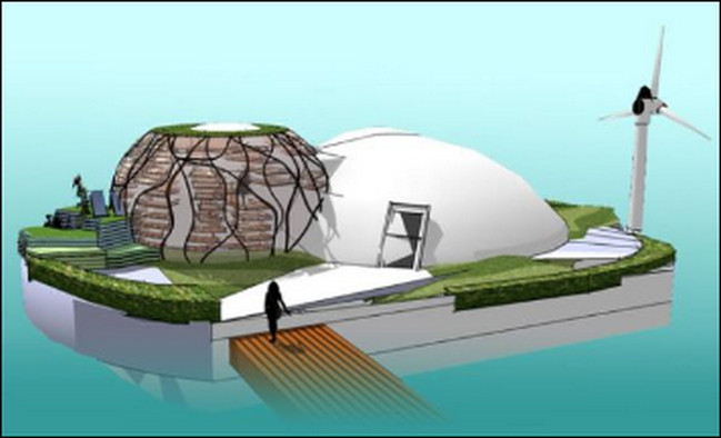 Waterpod rumah terapung adalah sebuah pulau triple-kubah yang akan memenuhi semua kebutuhan energinya dari sumber-sumber alam. Selesai dengan kayu daur ulang, logam, plastik, kain dan bahan lain, Waterpod akan mendukung energi alternatif dan pertanian vertikal irigasi oleh air murni dari Sungai Hudson.