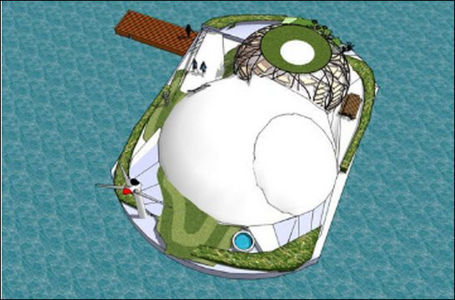 Wolf Hibertz ingin menggunakan lautan sebagai situs masa depan rumah. Perancang visioner telah menemukan cara untuk menggunakan sinar matahari untuk mengubah mineral dalam air laut menjadi kapur. batu kapur tersebut akan digunakan untuk membangun rumah pulau terapung.