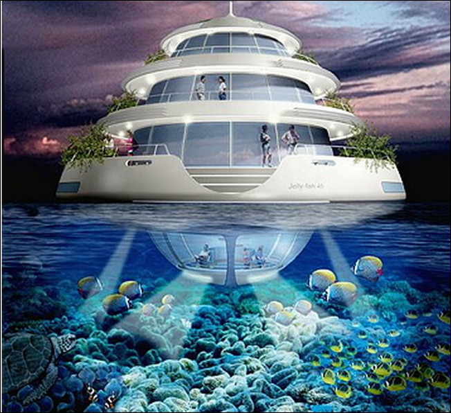 Padahal, jika Anda membeli rumah terapung, Anda dapat mematuhi tata-nama, mana yang Anda inginkan. sudut pandang 3m membentang di bawah permukaan dan terlihat seperti ubur-ubur yang fantastis. Kursi-kolosal di-laut-berdiri 10m tinggi dan lebar 15m.