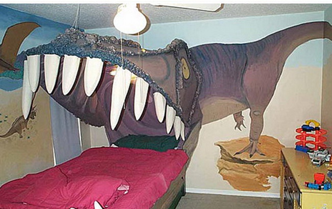 Anak Anda adalah istimewa yang khusus untuk Anda dan karena itu Anda harus memastikan bahwa anak-anak Anda desain kamar tidur juga bahwa banyak istimewa. Tapi apakah Anda pernah pemikiran manusia di kamar tidur Jurassic Park bertema? Rahang bawah dinosaurus adalah berengsel untuk mengungkapkan yang dibangun di kotak mainan, dan mural di kamar tidur mencerminkan tema dinosaurus.