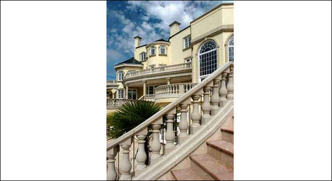 Dibangun diatas tanah 20,000 square foot. rumah ini mempunyai 8 kamar tidur dan 10 kamar mandi.