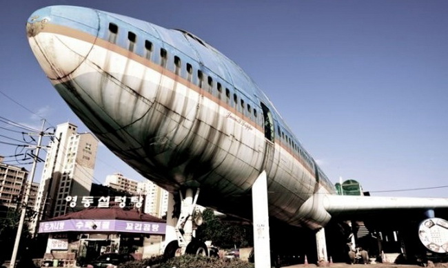 Kami pernah melihat sebuah pesawat Boeing 747 yang telah dirubah menjadi hotel khusus bacpacker dan rumah tinggal, akan tetapi pesawat jet raksasa yang berada di Namyangju-Si yang berada disekitar Seoul , korea selatan ini benar-benar disulap menjadi sebuah Restoran.