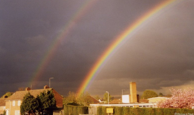 Pelangi ini benar-benar terlihat seperti busur lingkaran sempurna (dengan radius tepat 42 derajat, menurut Descartes).