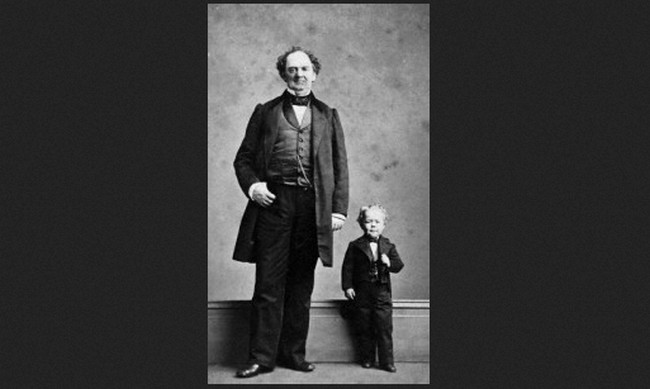 Nama aslinya Charles Sherwood Stratton. Nama panggungnya General Tom Thumb diambil dari dongeng Tom Thumb, manusia sebesar ibu jari. Ia menjadi penghibur setelah bergabung dengan grup sandiwara keliling PT Barnum dan mulailah melakukan tur ke banyak negara.