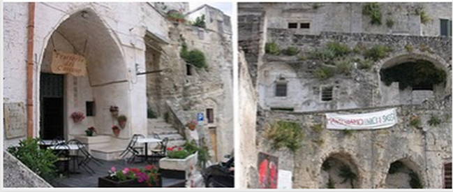 Di kota Matera batuan kuno di Italia barat daya, orang tinggal di rumah yang sama persis bahwa nenek moyang mereka tidak 9.000 tahun yang lalu. Matera diciptakan dari jurang berbatu dan gua-gua alam yang banyak di daerah tersebut - disebut 'Sassi di Matera' - adalah rumah pertama dari penduduk Neolitik di wilayah tersebut. Gua menciptakan labirin rumah, dan itu hampir mustahil untuk membedakan formasi batuan alam dari arsitektur kuno. Rumah-rumah tampaknya tumbuh dari batu dengan cara organik, menciptakan sedikit dari objek wisata dari apa yang pada pertengahan abad ke-20 sebuah kota hantu. Matera adalah terutama pengaturan untuk film Mel Gibson "The Passion dari Kristus '.