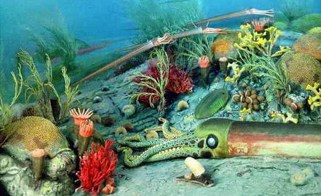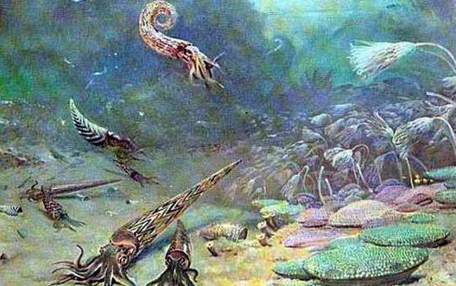 Hidup mulai berkembang sekali lagi selama periode Ordovisium. Nautiloids (gurita primitif), trilobita, koral, bintang laut, belut, dan ikan berahang mengisi lautan.