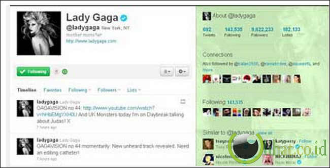 Penyanyi Lady Gaga dengan follower terbanyak di dunia, ternyata pernah terkena hack pada 27 April 2011. Sang peretas memposting 2 tweet berisi tautan gelandangan ke 13.873.401 penggemar Lady Gaga di Twitter. Dari isinya, kemungkinan sang peretas merupakan orang Spanyol. Dan inilah 2 karya sang peretas di akun Twitter milik Lady Gaga: “VIDEO PROHIBIDO LADY GAGA @ladygaga http://bit.ly/ez6cFM ganar dinero navegando” dan “TAROT de shakira http://bit.ly/gnHb0v clarividente de @shakira #horoscopo ganar dinero navegando.”