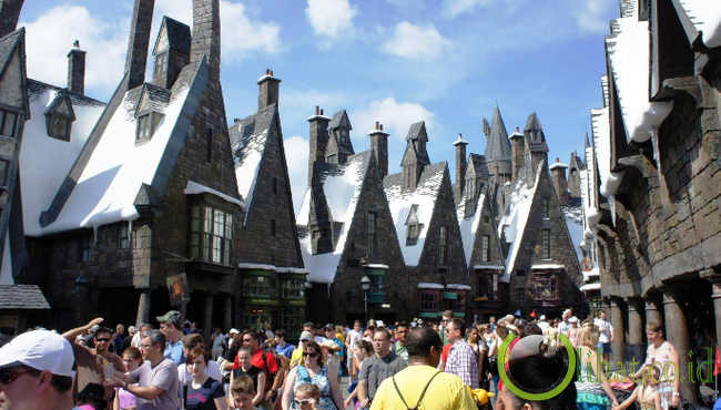 Terdambakan - Di tempat inilah, Anda bisa merasakan langsung pengalaman di dunia sihir Harry Potter. Mulai dari memasukkan nama Anda ke Piala Api (Goblet of Fire), naik Chinese Fireball Dragon sampai masuk ke halaman Hogwarts. Selain wahana menarik tersebut, para penggemar Harry Potter juga bisa memilih tongkat sihir di toko Ollivander, mencicipi gula-gula di Honeydukes dan mencoba berbagai mainan aneh, seperti 'Telinga Terjulur' di Zonko's Joke Shop.