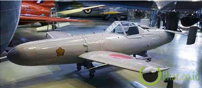 4. Ohka (Cherry Blossom) Suicide PlanePesawat ini di ciptakan jepang atas keputus asaan karena kekalahan jepang oleh sekutu. Ohka dikembangkan dalam upaya terakhir untuk menghancurkan armada Amerika. Itu adalah tujuan utama dibangunnya kamikaze pesawat yang dipersenjatai dengan hulu ledak seberat 1200kg.