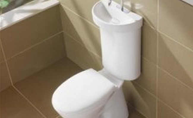Kenapa tidak gunakan Toilet Sink seperti gambar di atas? Praktis, bahkan membantu menghemat air. Ya, air hasil cuci tangan kita masuk ke penampungan untuk membersihkan "hasil bom" di toilet.