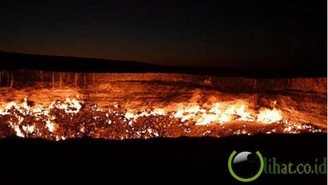 Apa yang ada di foto ini adalah area di luar Darvaz, Uzbekistan. Penduduk lokal menyebutnya Gerbang neraka. Lokasi ini dulunya adalah tempat pertambangan gas yang seluruh bahannya jatuh ke limbang pembuangan. Api yang keluar dari lubang raksasa ini sudah 35 tahun terbakar dan tidak ada yang tahu kapan bisa berhenti. Penasaran ingin ke sana?