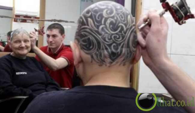 Terdambakan - Ini bukan nenek sembarang nenek. Ia tak main-main merajahkan tato di anggota badannya. Bukan tangan, dada, punggung, atau yang lainnya, nenek ini minta ditato di kepala. Mengerikan!