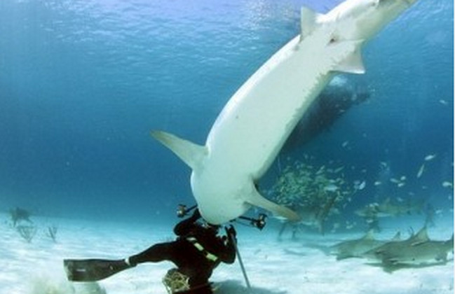 Seorang fotografer profesional terkenal, Russell Easton, sedang memotret seekor hiu harimau berukuran 12 kaki di Bahama. Namun tiba-tiba gigi tajam dan besar seekor hiu muncul di balik jendela bidik kameranya. Dengan spontan, Russell pun menangkis gigitan tersebut dengan kameranya. Dengan segera Russell berenang menjauh ke tempat yang aman sementara ikan hiu tersebut sibuk dengan kamera Russell di mulutnya. Meskipun sempat terkejut, namun Russell tidak kapok untuk menekuni profesinya dengan mengambil gambar – gambar langka di bawah laut.